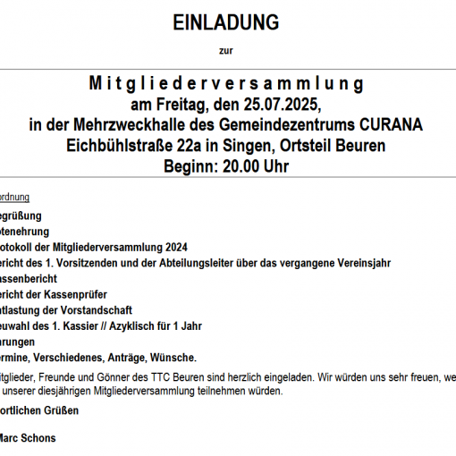 Die Saison wird vorerst unterbrochen. Siehe folgende Pressmitteilung von unserem Verband TTBW.